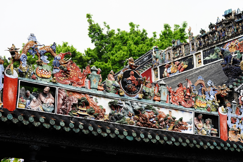 陈家祠又称“陈氏书院”,是目前现存规模最大、保存最完好的广府传统祠堂式建筑,被誉为「岭南建筑艺术明珠」。