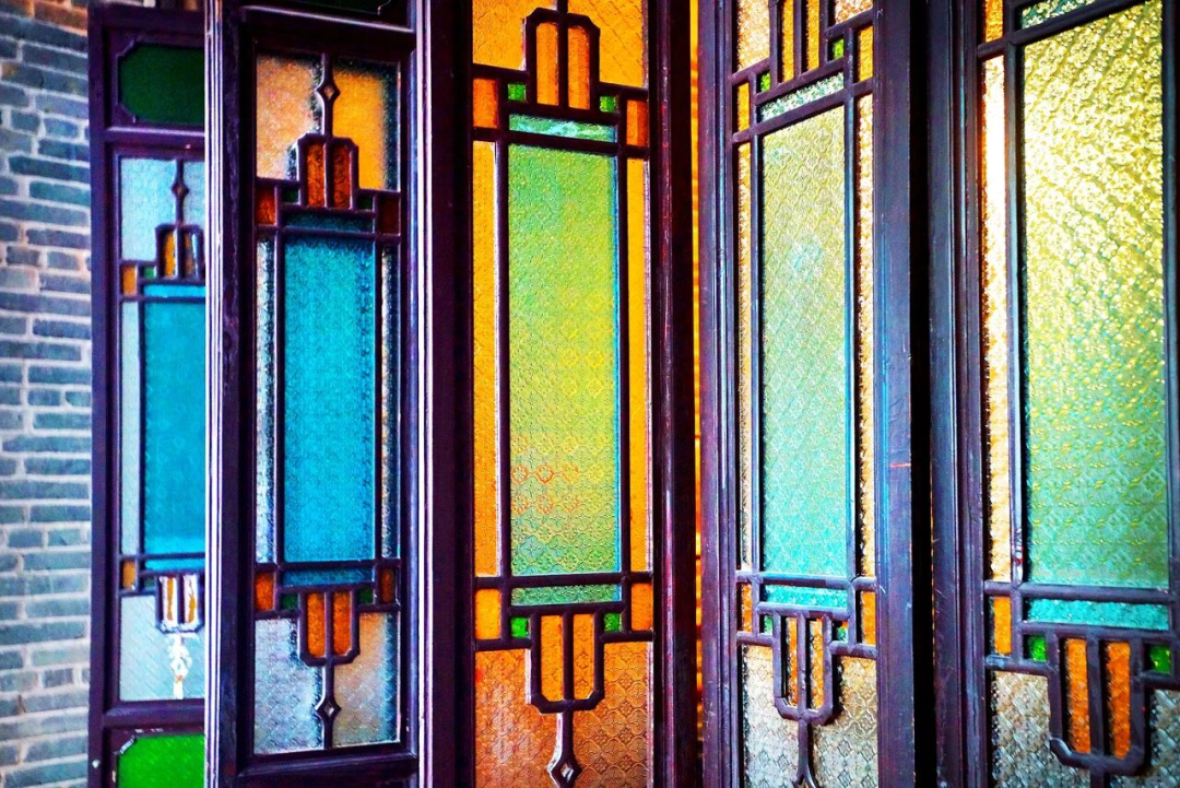 五颜六色的满洲窗也是西关大屋的标志之一,其将西方的彩色玻璃和中国传统的窗户样式进行融合。满洲窗让阳光透进屋子时都有了颜色。