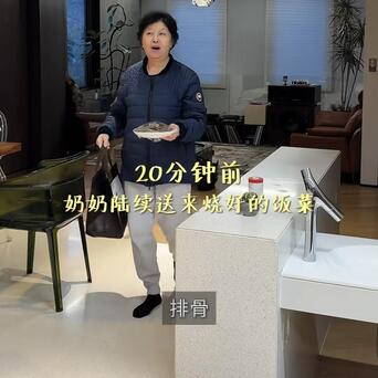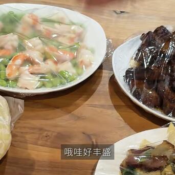 梅婷真是命好,婆婆亲自为她做6个菜送到家里来,排骨、腊肉,大虾还有玉米,十分丰盛!而且每个盘子都用保鲜膜盖好,非常细心,菜装在保温包里面,干干净净,卖相也不输外面饭店的菜品,看梅婷的表情就知道有多高兴了。